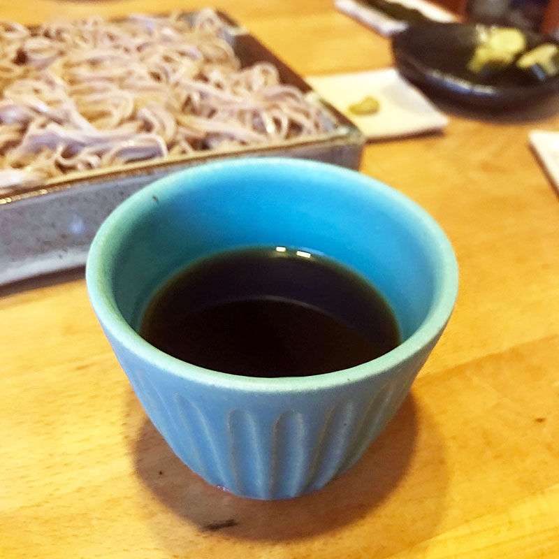 この前エミシ工房のギャラリー展で買ってきたトルコ釉の小さなカップを蕎麦猪口にして。