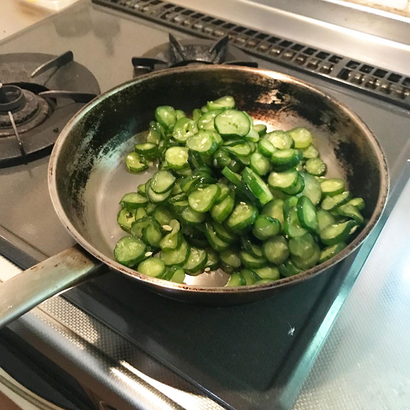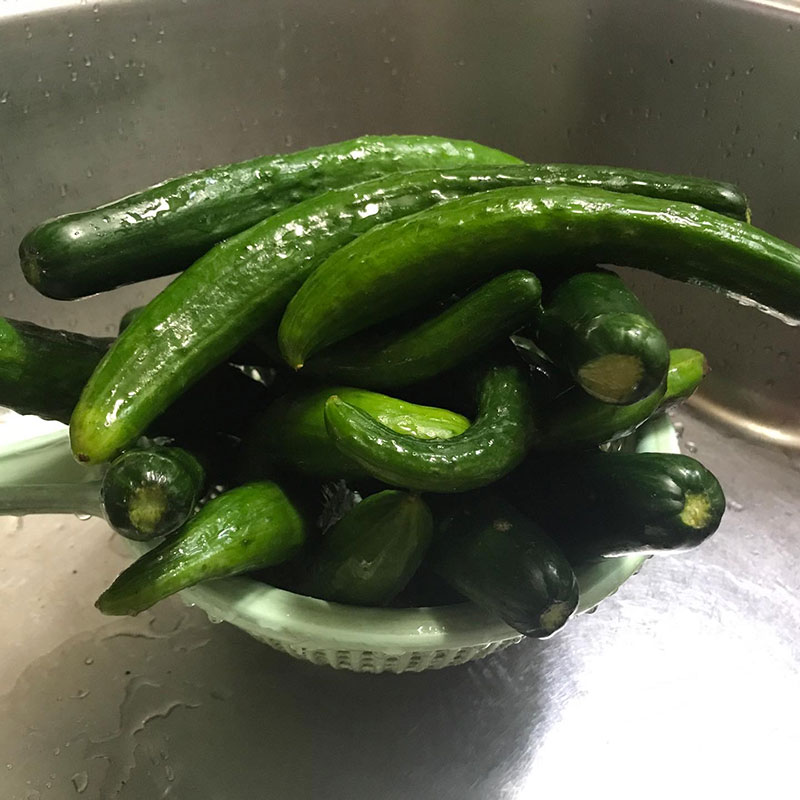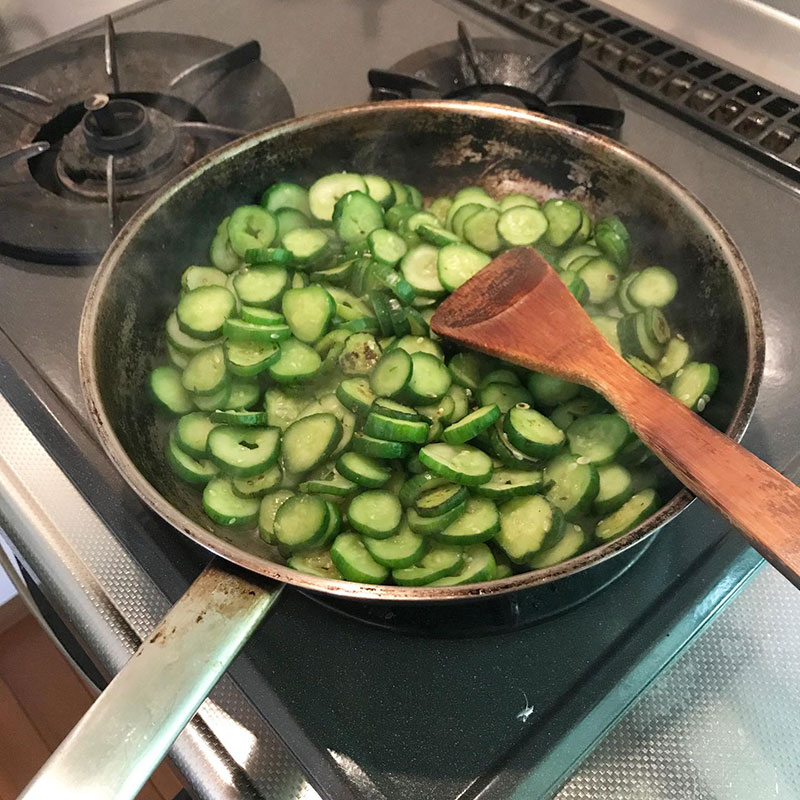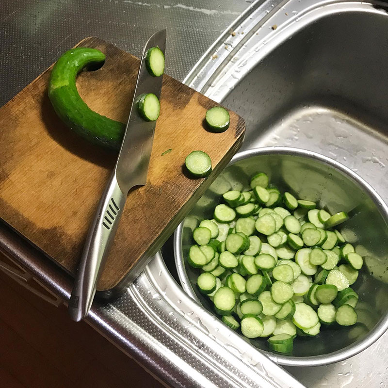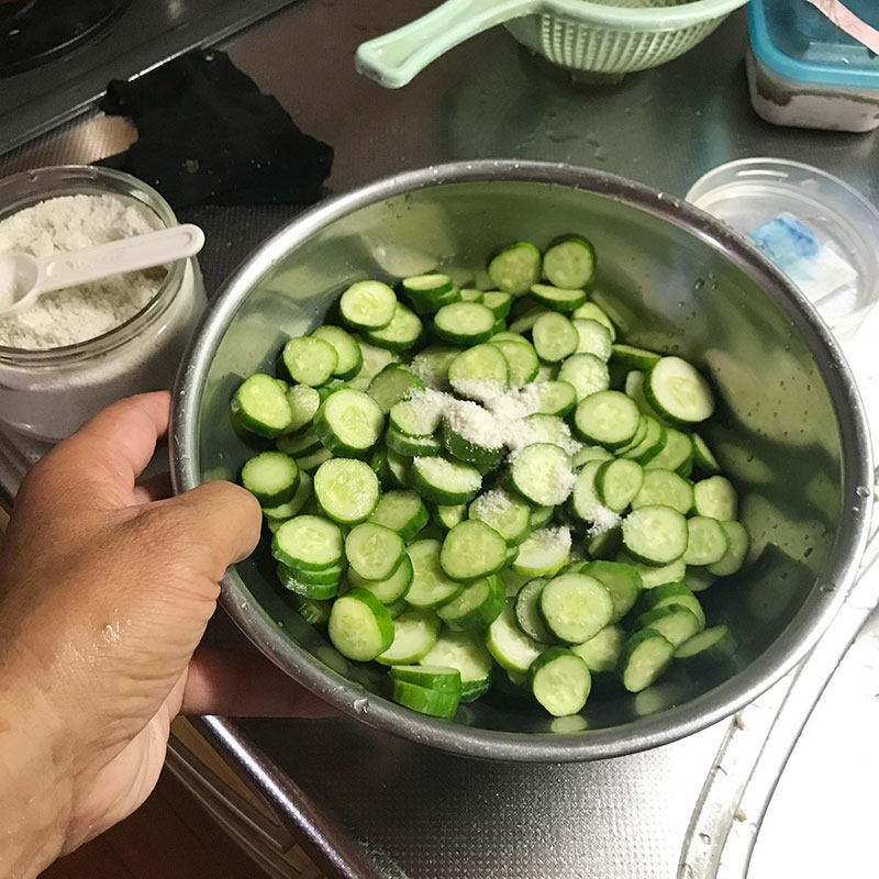 朝、きゅうりをたくさんいただいた。大変!石彫り前に仕込んでいく。