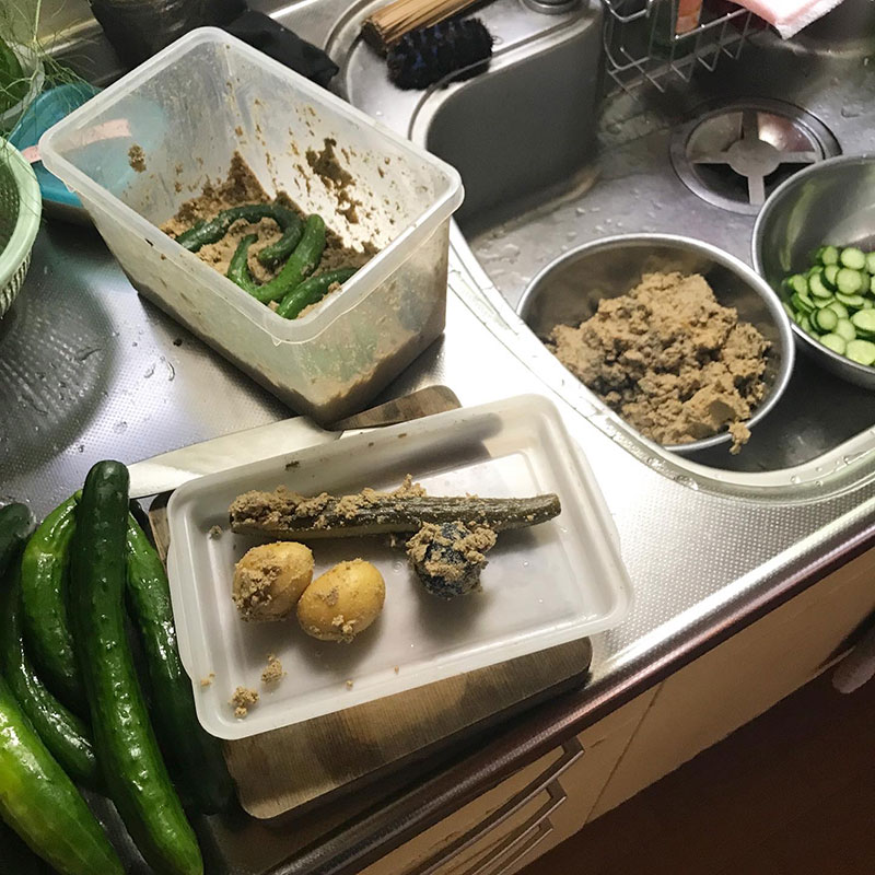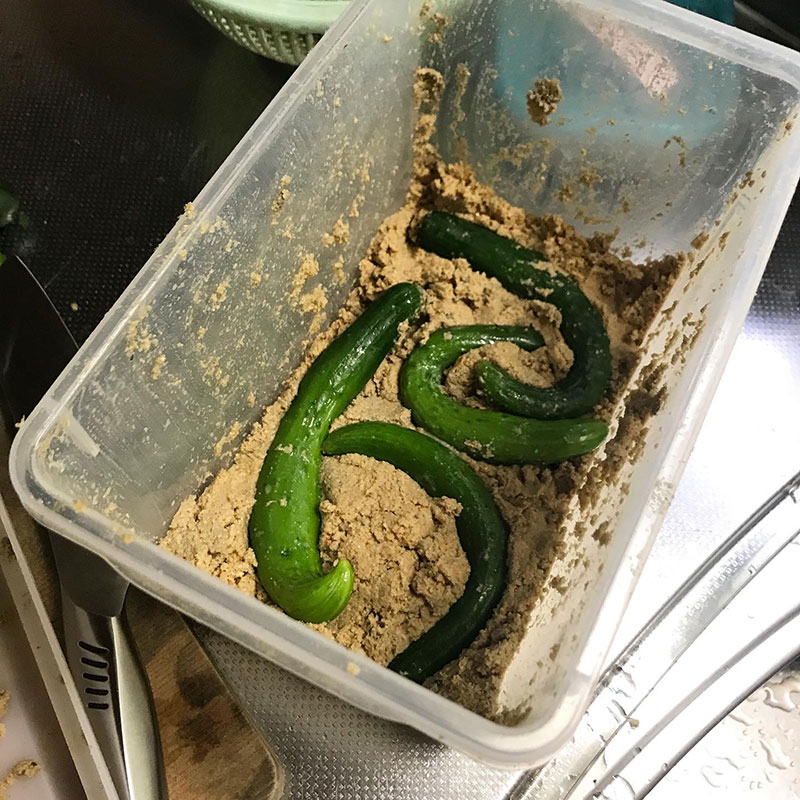 小さなきゅうり10本くらいはぬか床に詰めて、