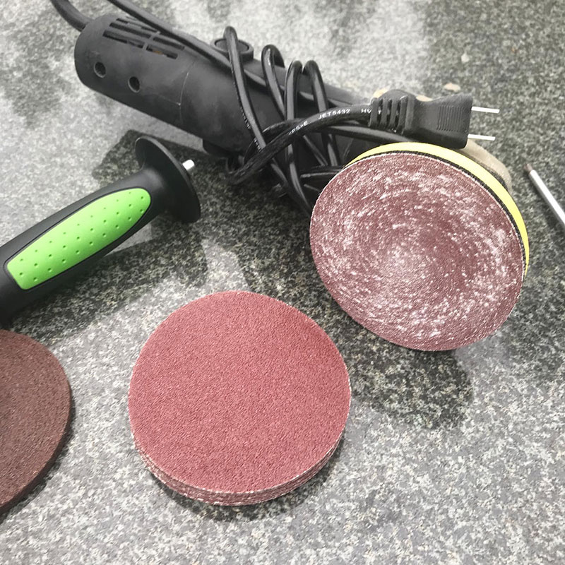 もっと低速で回るグラインダーが欲しかったけどなんとかなりそう。それに紙やすりをつけられるマジックテープの台や紙やすり、砥石や