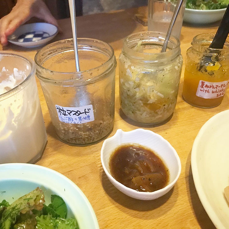 マーマレード以外にも、自家製の粒マスタードやネギ塩ダレ。