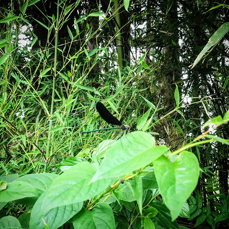 一昨年の大水害以来姿を見られなくなったハグロトンボ。今朝、裏山に3匹!そのうち1匹はオスだった。もっと増えるといいな。