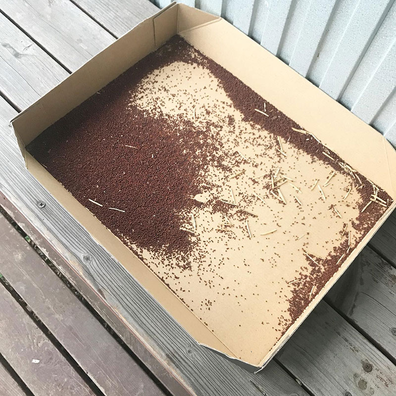 うまくゆすると種と殻に分かれるのでざっと余計なもの取ってしばらくこのまま外に。