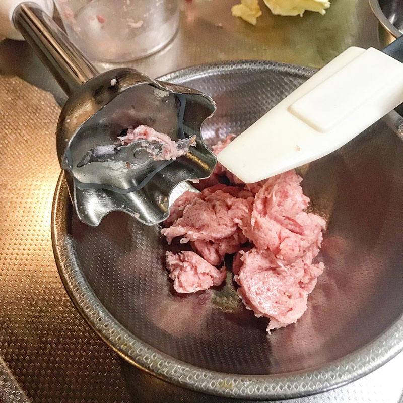 ひき肉が無かったので豚肉をハンドブレンダーにかけて