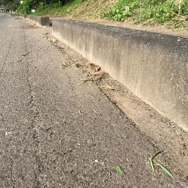 震災復興のダンプに轢かれないように気をつけながら車道側に生えてた草も全部刈って掃いた。制作時間、1時間損した。体力をかなり損した・笑