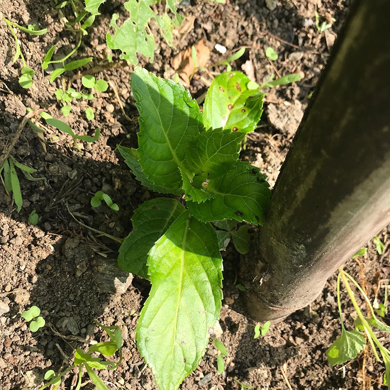 土手に挿し木した3本の紫陽花がまだ枯れずに育ってて
