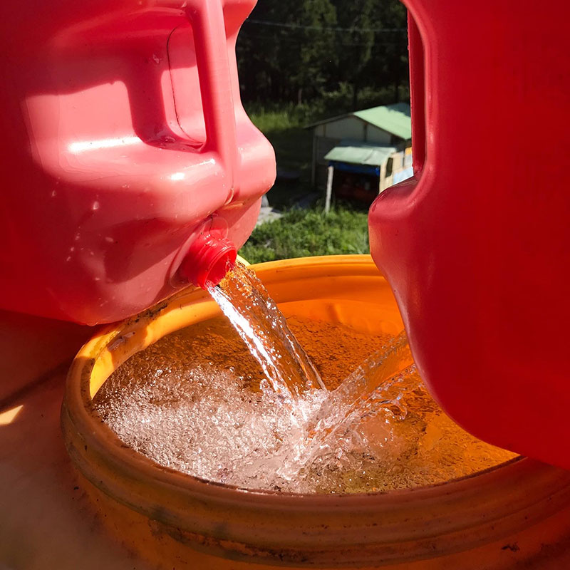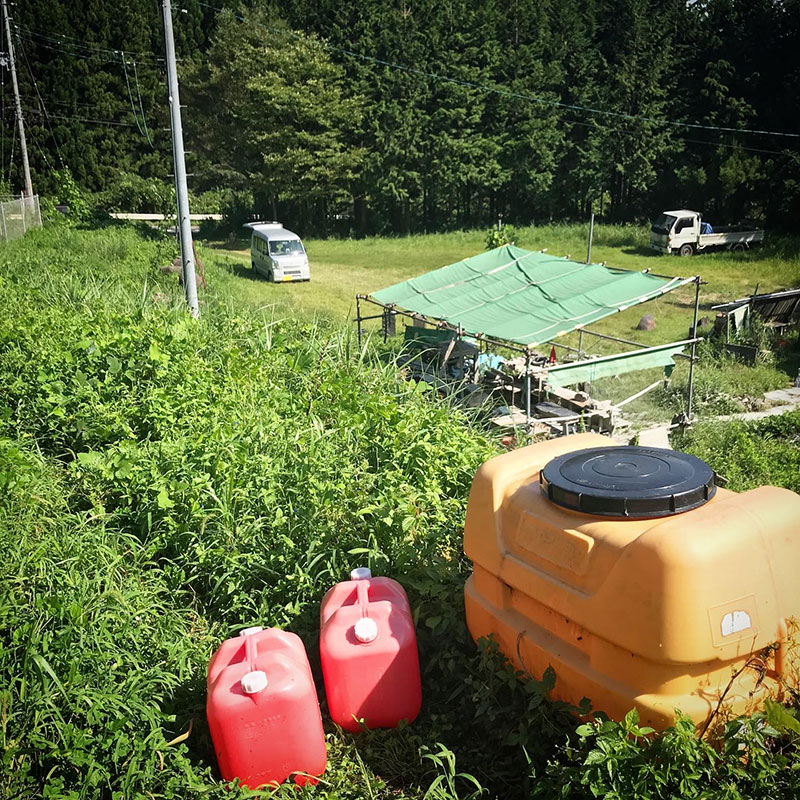 家で汲んで来た水、40Lを土手の上まで運んでタンクに貯める。