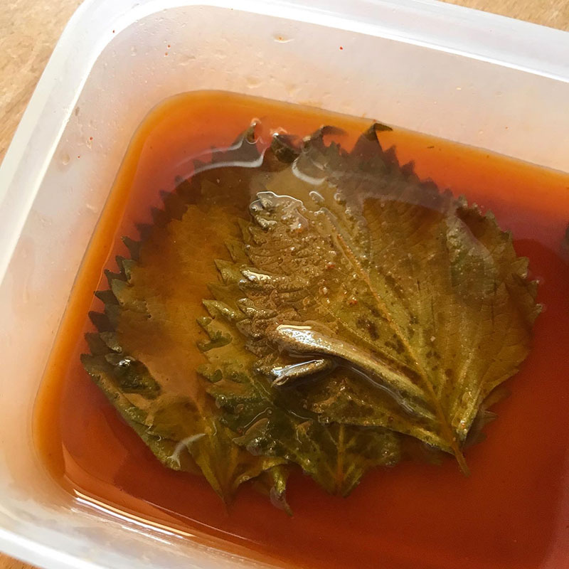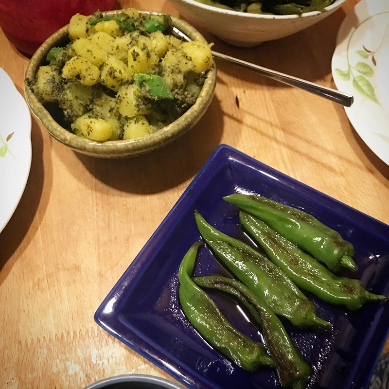 大葉のポン酢&コチュジャン漬け。万願寺とうがらし焼き。
