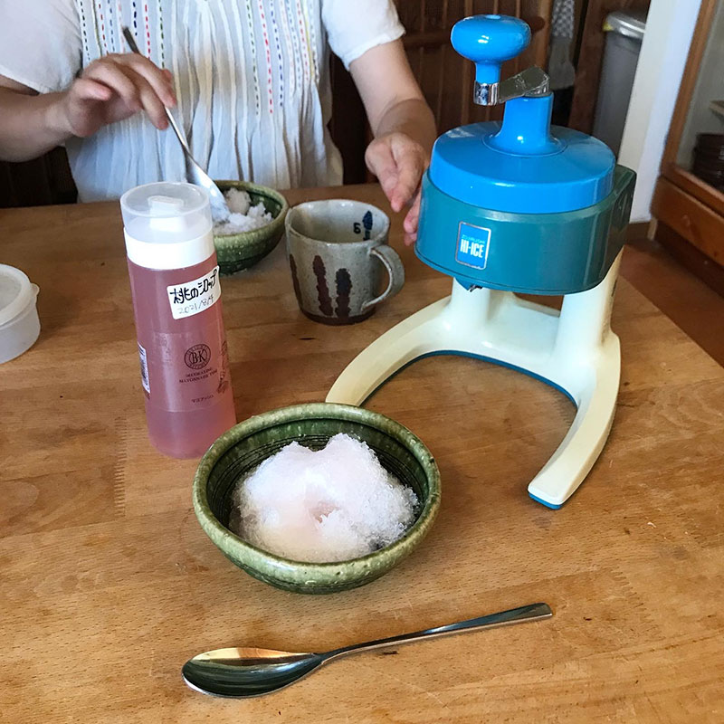 桃のシロップのかき氷。