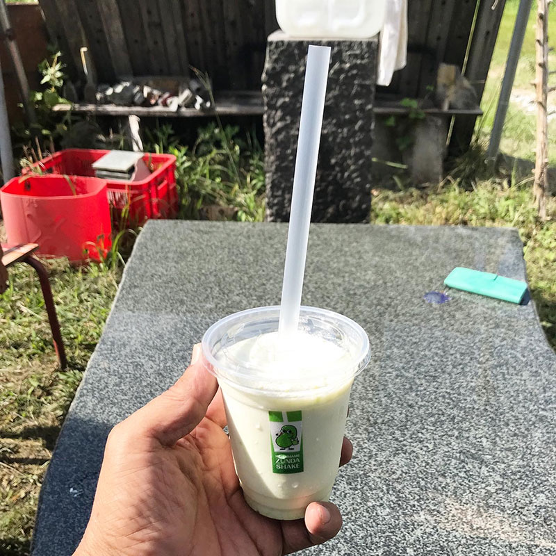 仕事場にお客さま。あぐりっとでずんだシェイク買ってきてくれた(ありがとうございます)。