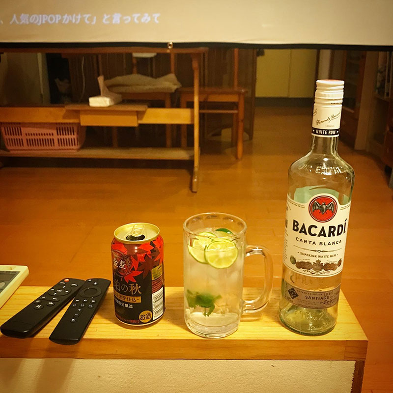 畑のミントとバカルディ・ラムですだちのモヒートと金麦の“琥珀の秋”飲みながら観る。