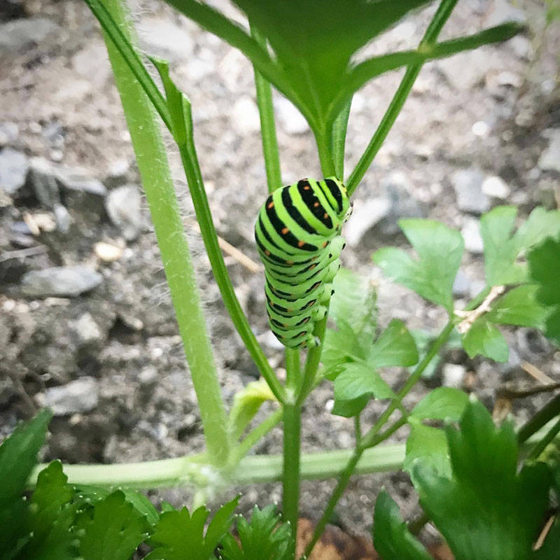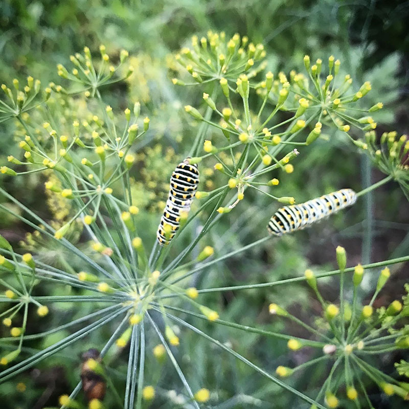 ディルとイタリアンパセリの葉を食べまくってるアゲハ蝶の幼虫たち。