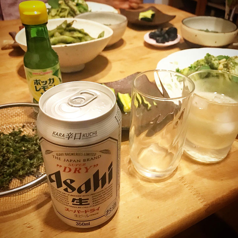 鍋で煮ないでカップに叩いたものを入れて熱々のチキンスープを注ぐと色が鮮やかな緑のままできれいで美味しい。月山の黒豆の枝豆。いただきます、って乾杯してカミさんに笑われた。「今日、全部緑だね」確かに〜。ミニトマトでも盛ればインスタ映えしたのに畑でいろいろ野菜を収穫中にミニトマトは全部食べてしまった(笑)