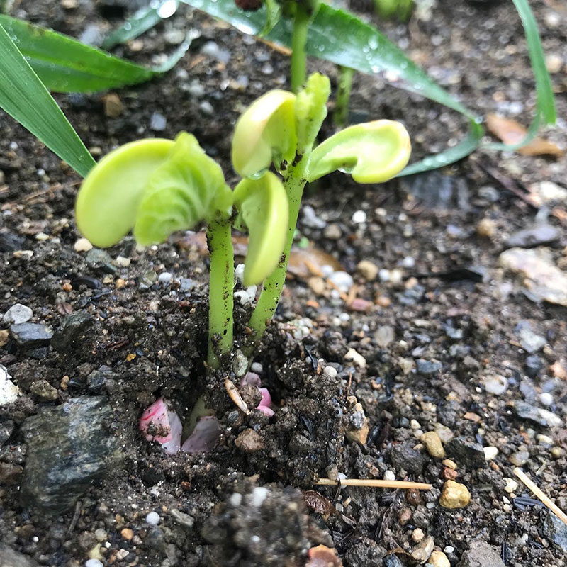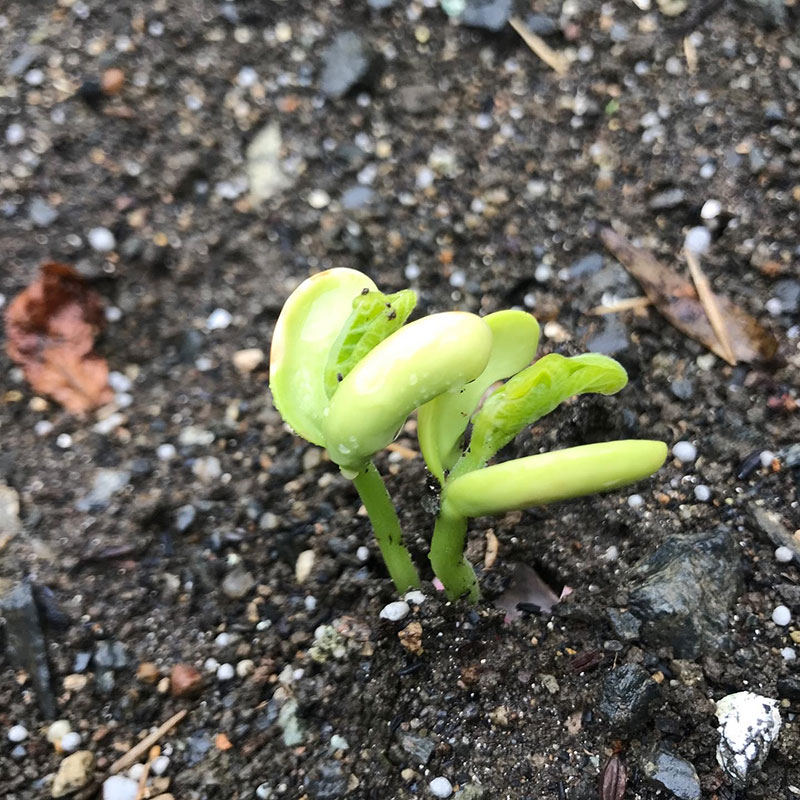 たっぷりの水分でいんげん豆発芽。