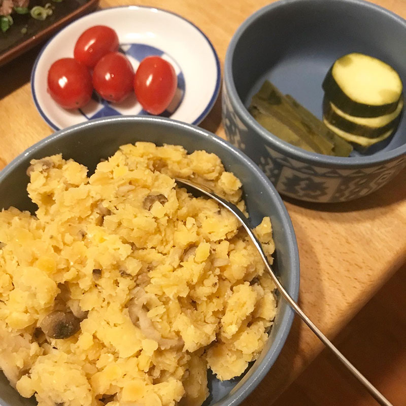 それから思いついてホーリーバジルの花芽を塩と漬けてるのでいただいたら香りも塩気も最高。活躍するなぁ、ホーリーバジルの花芽の塩漬け。