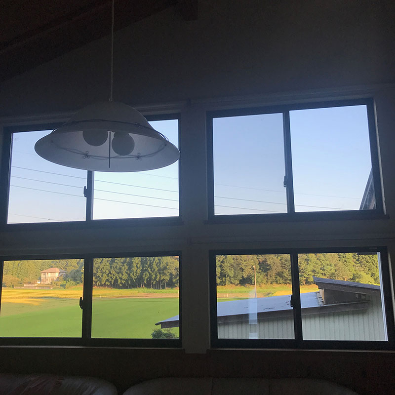 2階の居間の4枚の大ガラスを磨き上げるのが大変。