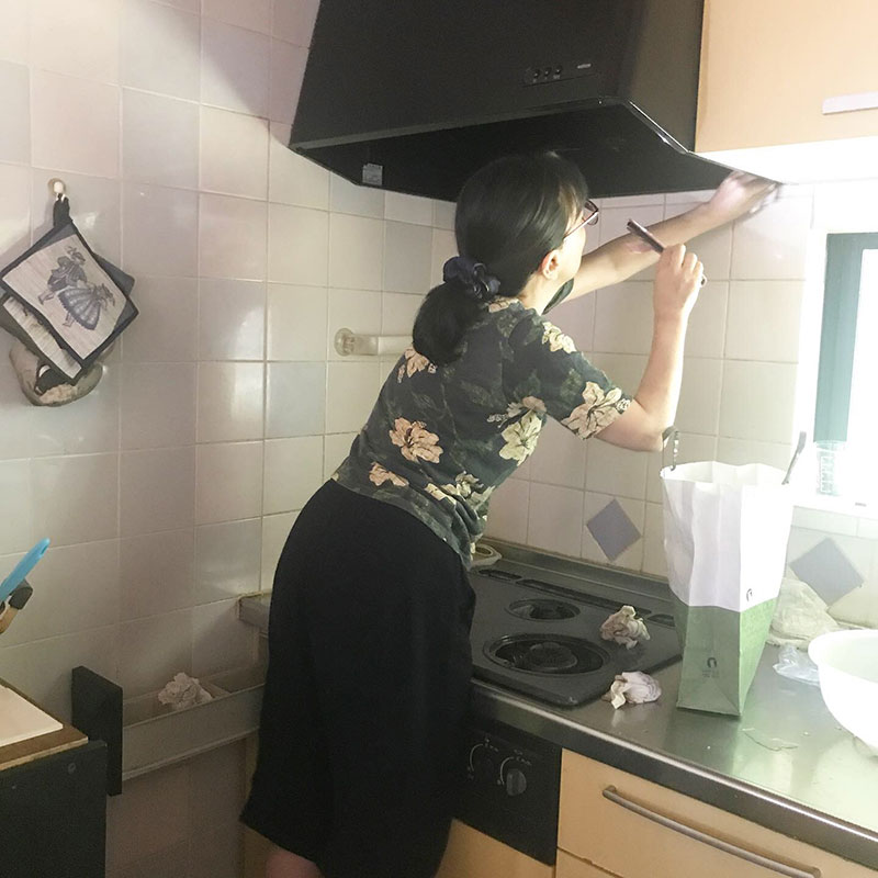 朝イチでカミさんは台所の換気扇の大掃除。
