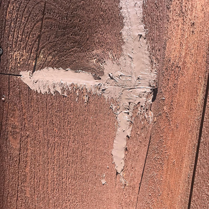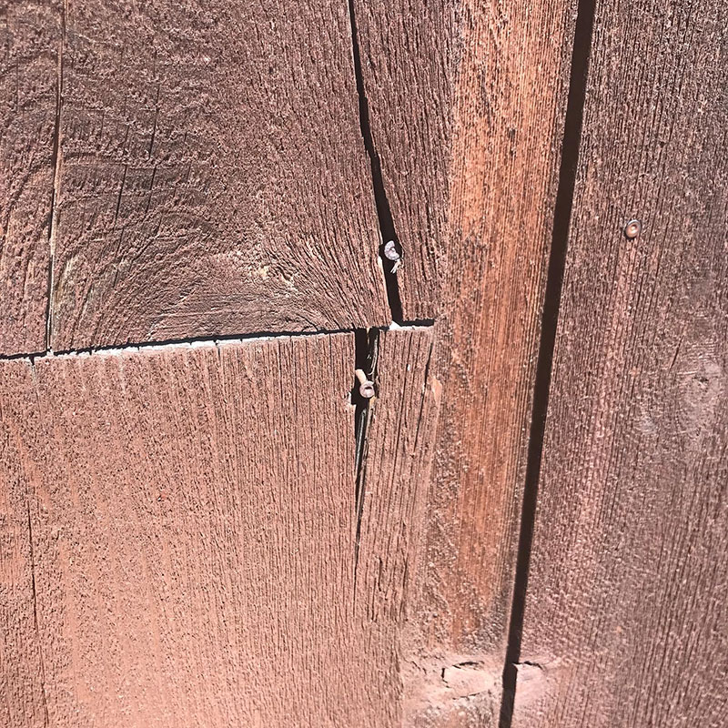 木仕上げの壁面の割れているところも