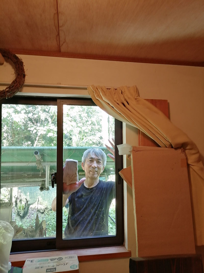 説明を読んで一度出来れば次から次へと外すのは簡単。だけど窓ガラスに一点の曇りも残さずに仕上げるのはなかなか難しいんだね。汚れ落とし用、仕上げ用のクロスで拭いてスクレーパーで水を切る。うまくいかなかったところは乾拭きで仕上げ。