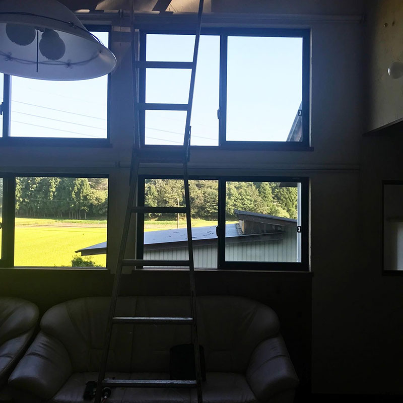 午前中に一階の窓は全て終了。