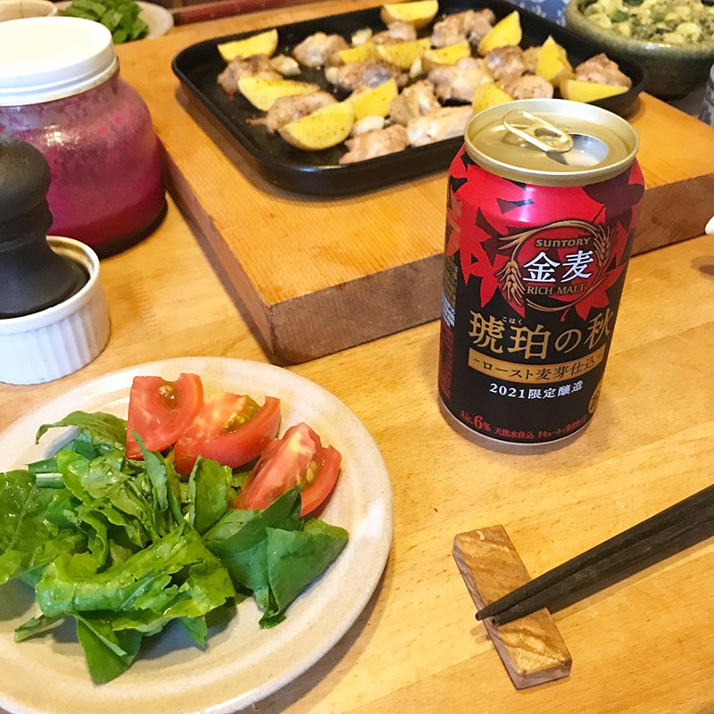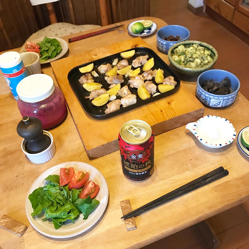 居酒屋我家、開店。カミさんとふたり一日中、大掃除したので料理したくない。カミさんがポテトと鳥のグリル仕込んでくれた。