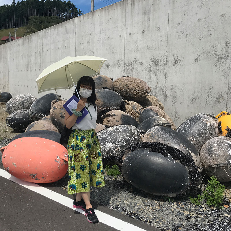 出た!女川駅前に。