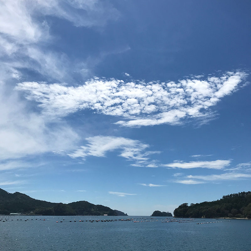 海の上の空に魚みたいな雲が浮かんでる。