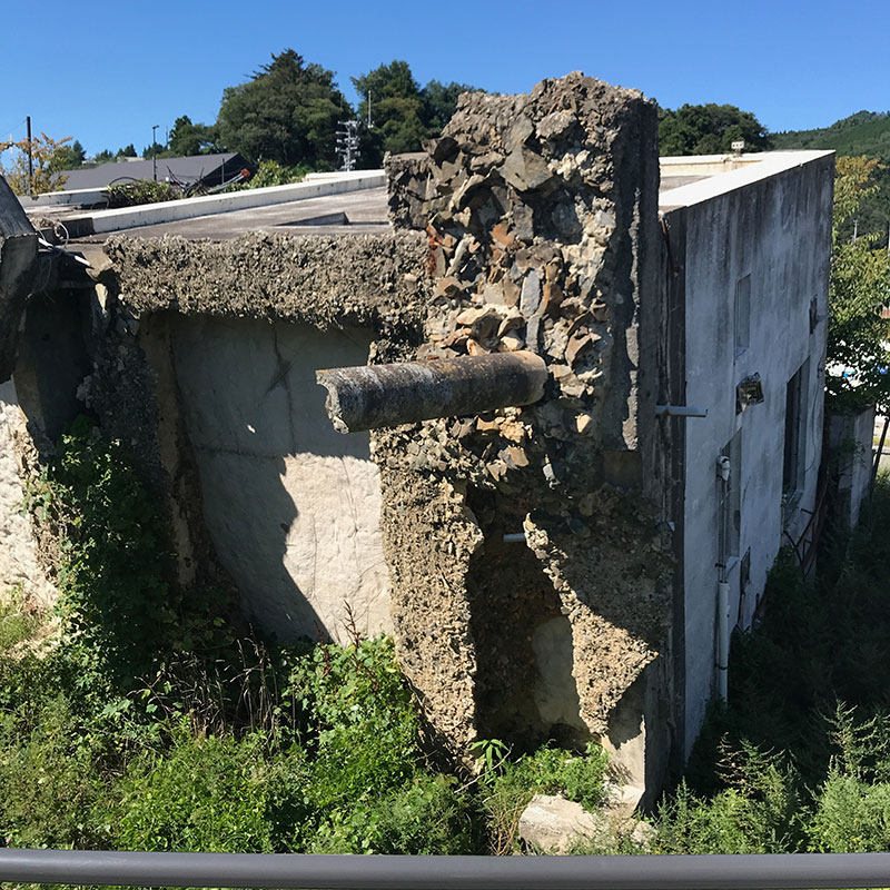 東日本大震災の津波で倒壊転倒した旧女川交番。