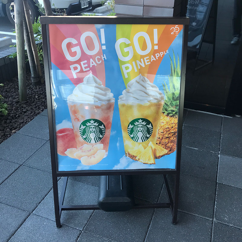 カミさんピーチのフラペチーノ、僕はパイナップルのフラペチーノ。
