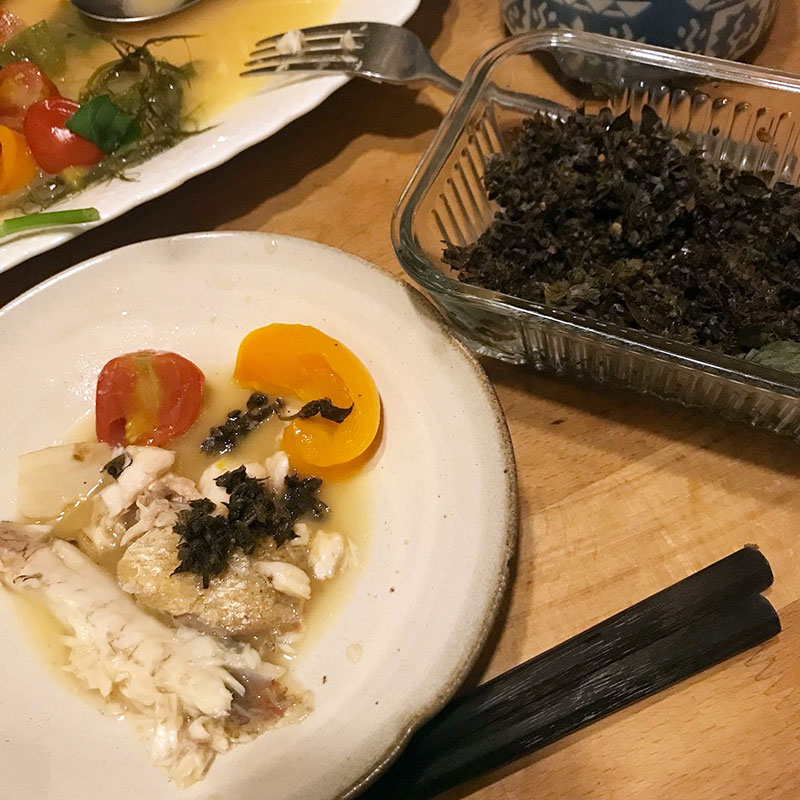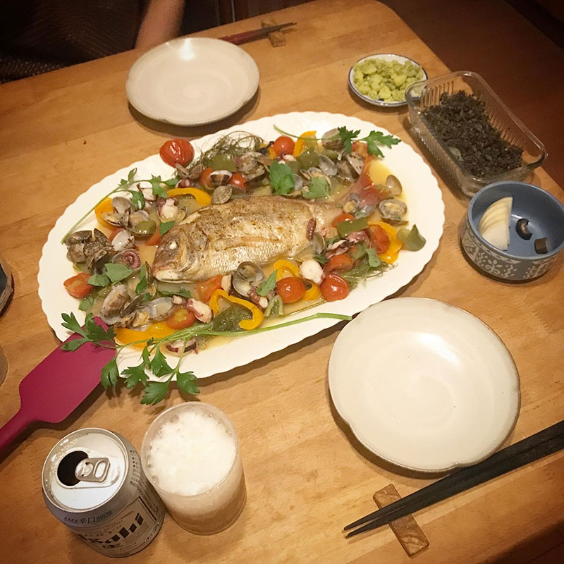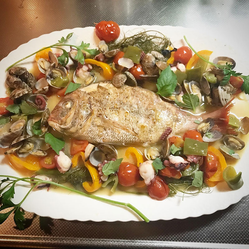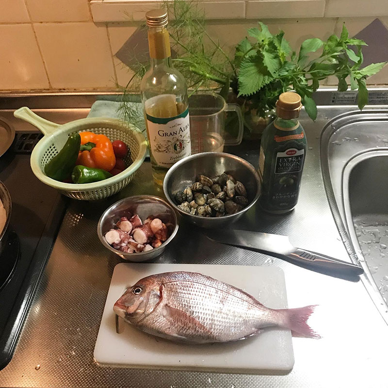 畑のフェンネル一緒にたっぷり煮てアクアパッツァにした。