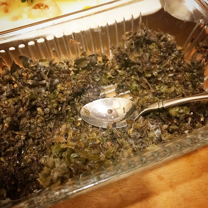 バジルを長く楽しむためにホーリーバジルの花芽を毎朝摘んでる。それをそのまま地面に捨てるのが忍びなくて水につけて灰汁を抜いては塩してるんだけど、これが大活躍してる。