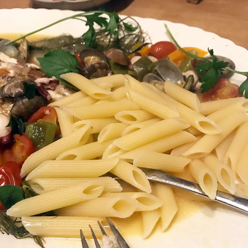 ペンネ煮て一緒に食べた。