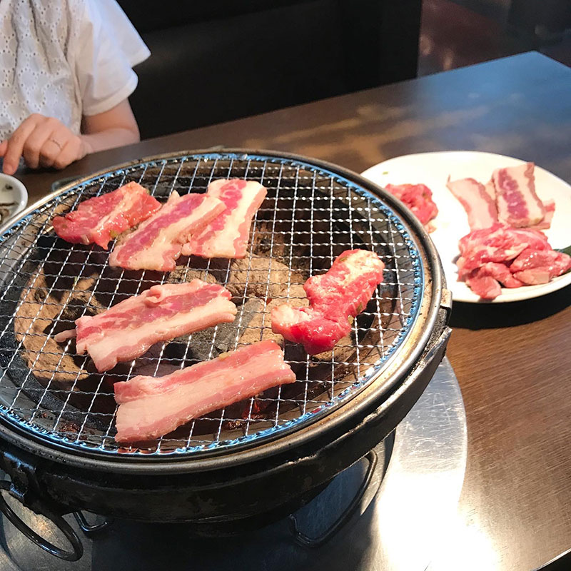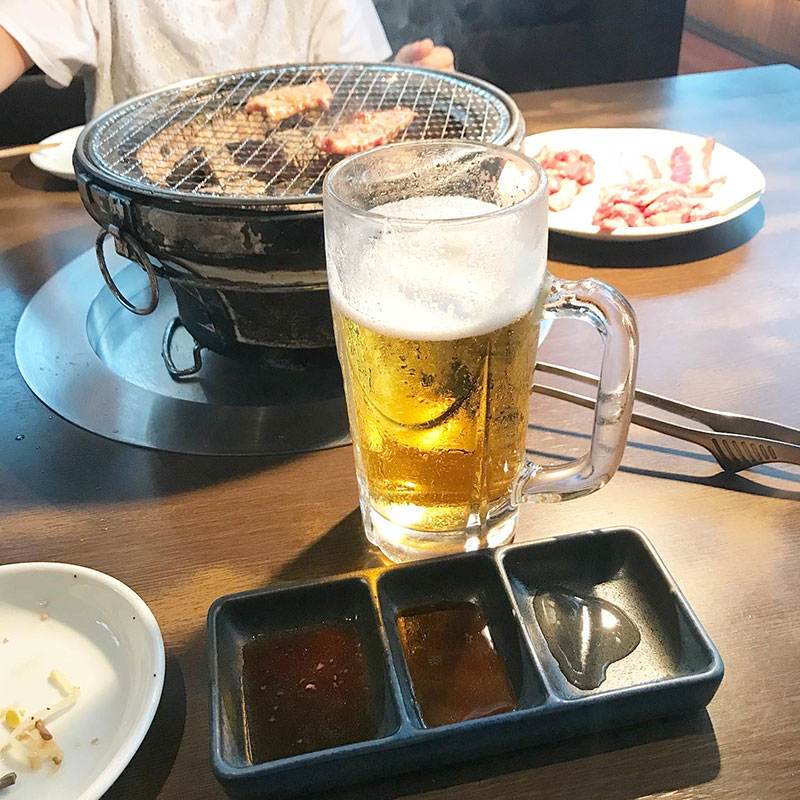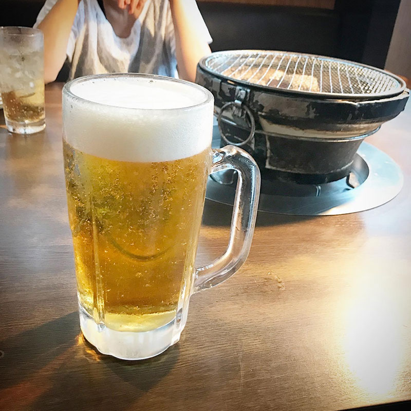 焼き肉とビール。うまー!焼き肉が美味しいのはもちろん、