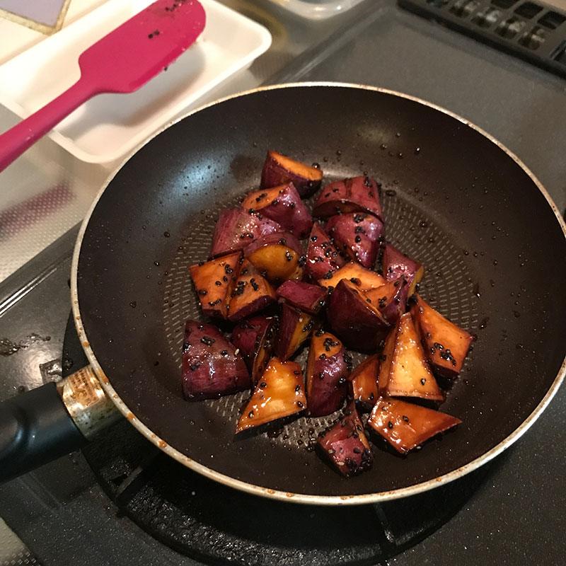 スライスしたさつまいもを水に晒している間に大学芋作る。