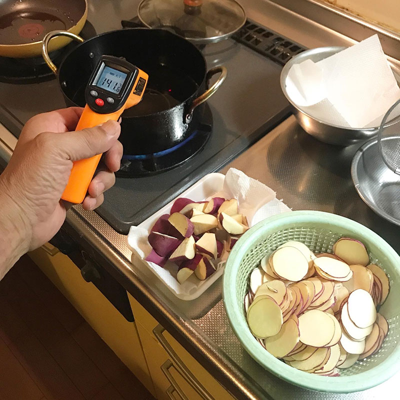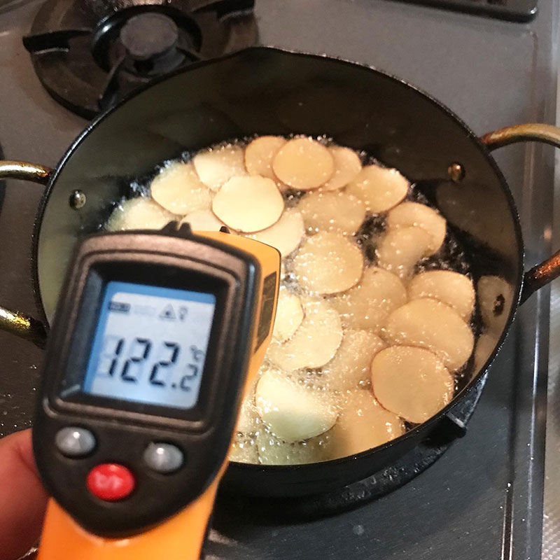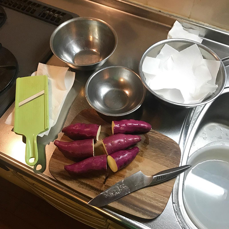 芋の揚がってる状態がわかる。ポテトチップスよりくっつかないし簡単。