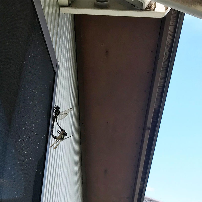 2階の居間の窓でオニヤンマが交尾していた。