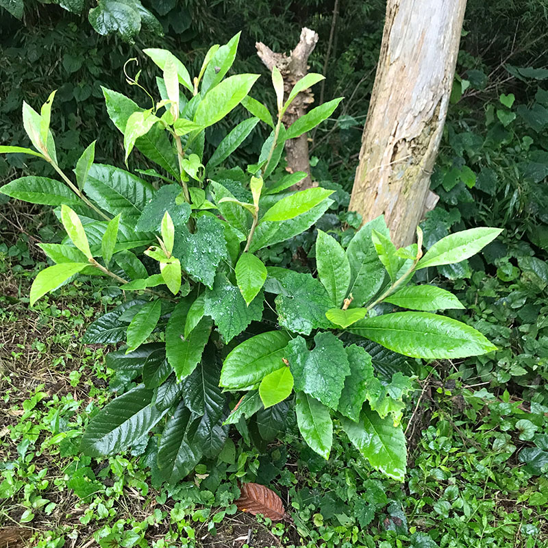 玄関先の月桂樹の鉢はきれいな新しい葉でいっぱい。