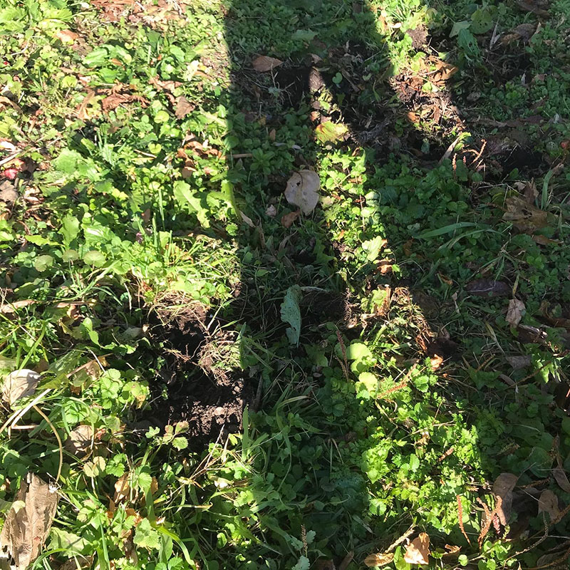 何という事でしょう。今朝、とうとう庭に猪の足跡が。