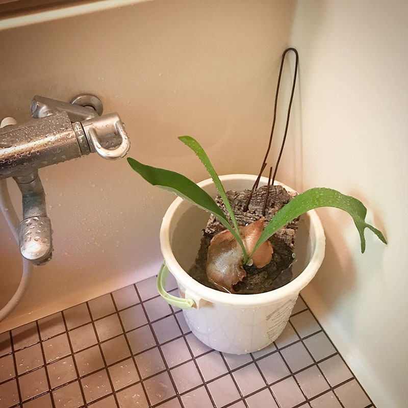 去年の今頃、日光浴させてあげようと思って外に出したまま取り込むのを忘れて霜に当ててしまい枯れる寸前になってしまったコウモリラン。なんとかここまで回復した。