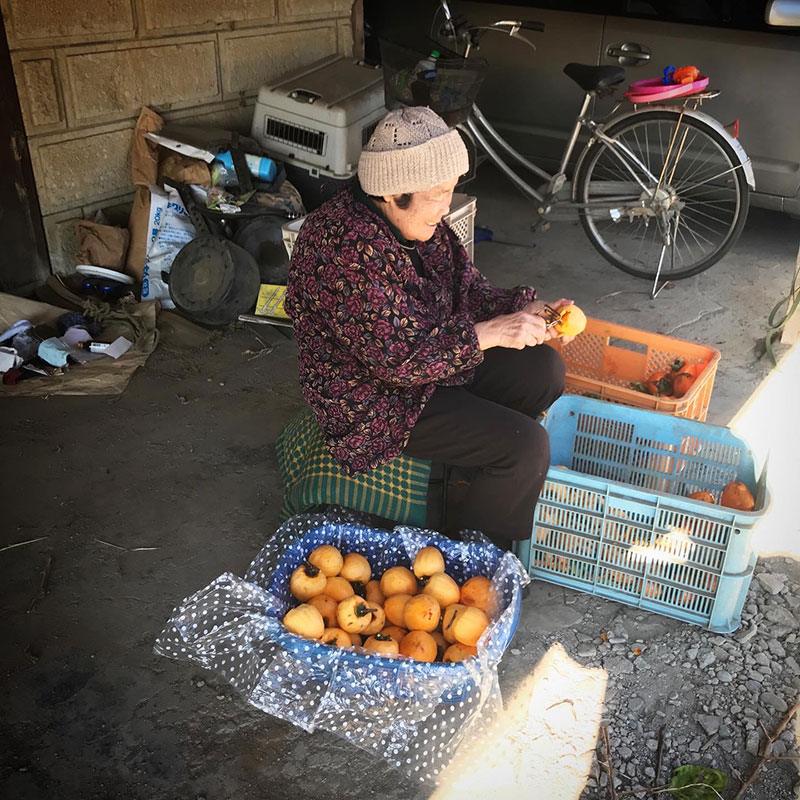 ひだまりで干し柿を作ってる姿がなんだかとても幸せな光景に見えて、