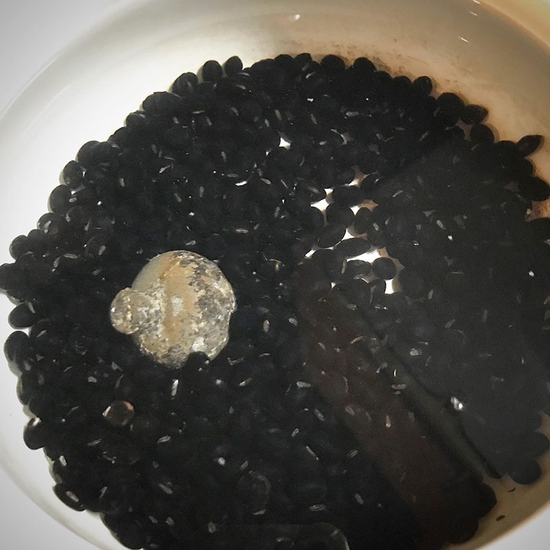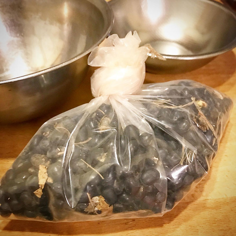 明日の夜まで24時間水に浸けてから、甘くふっくら真っ黒な黒豆煮にするつもり。1/3は納豆菌をつけて黒豆納豆にする。大好きなんだ、黒豆納豆!