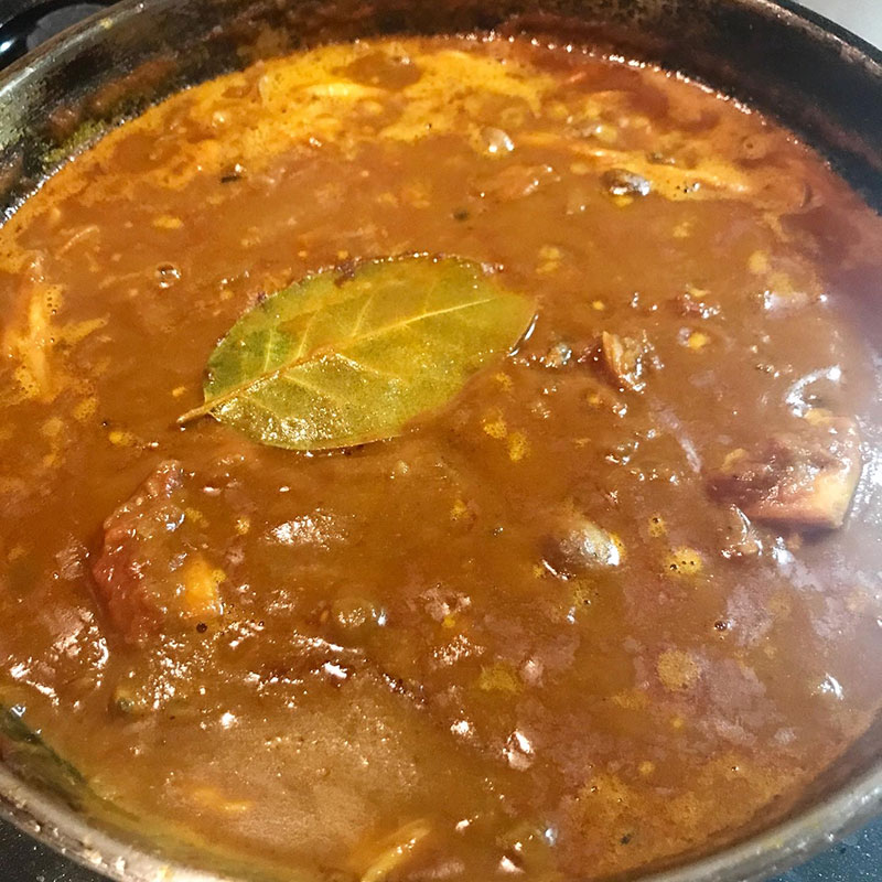 鉢で育ててる月桂樹で煮込んで出来上がり。すぐ食べたいところだけど冷凍庫へ。