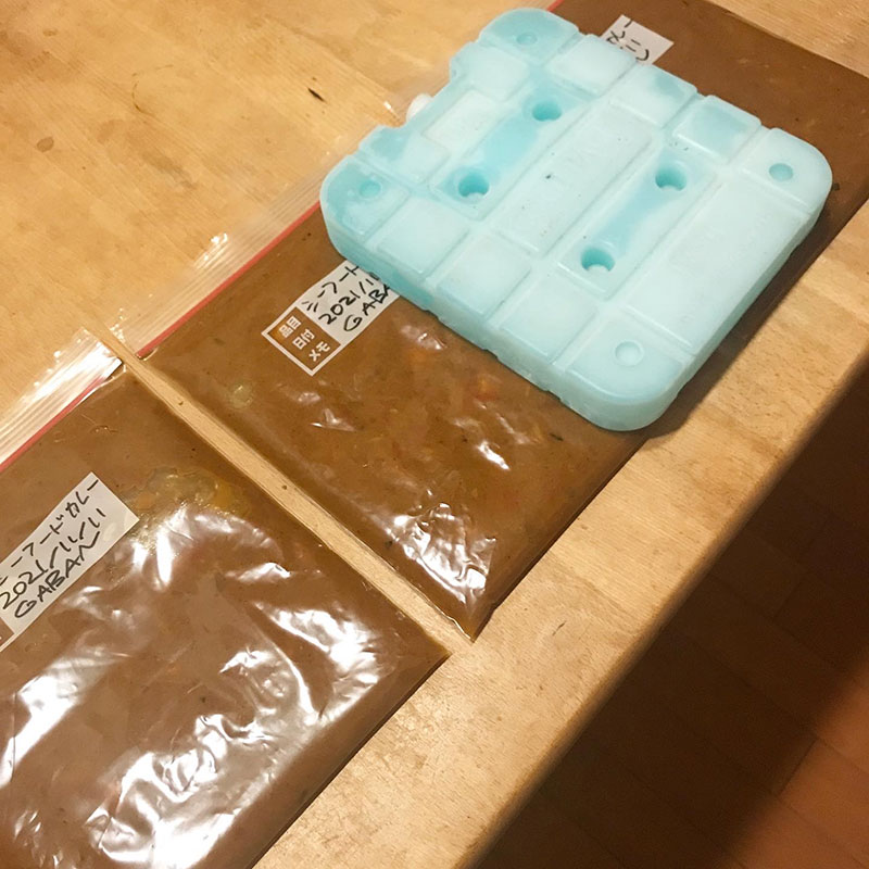 蓄冷剤で急冷して冷凍庫へ。