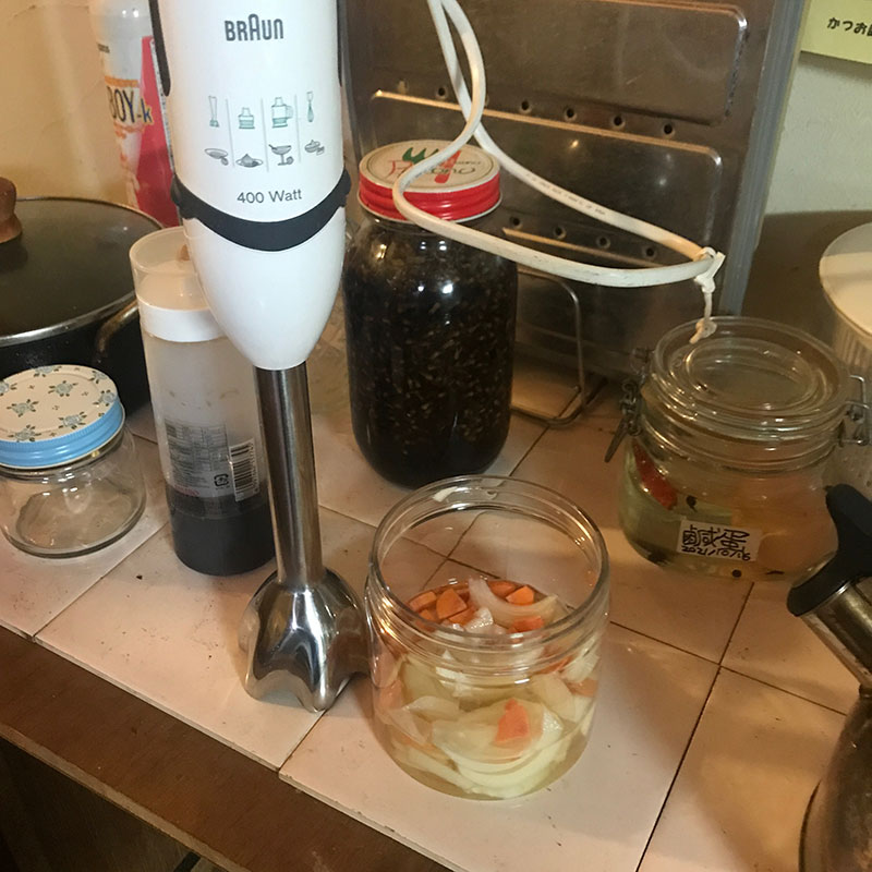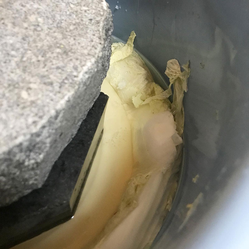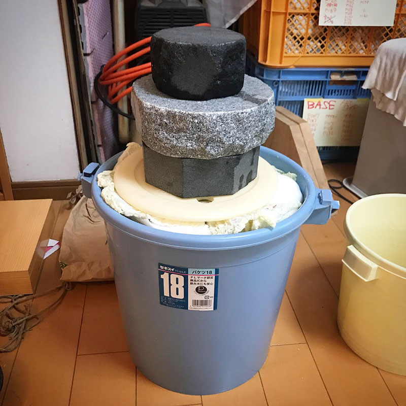 昨日仕込んだ時は樽の縁ぎりぎりまで白菜来てたけど重石2つ分下がったので