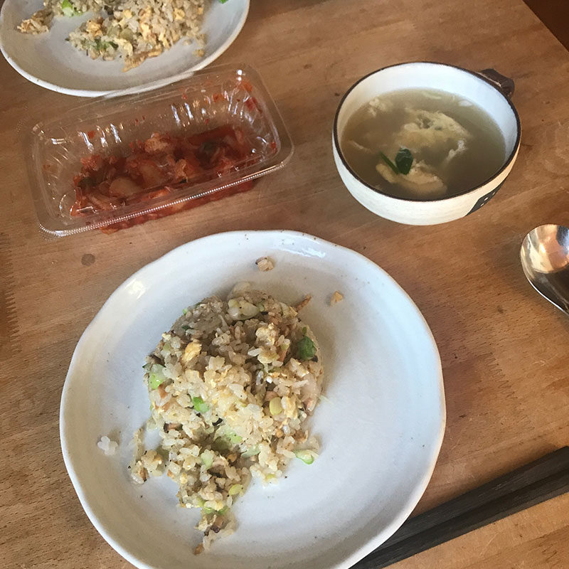 久しぶりの朝食。カンパーニュに目玉焼き乗せて。