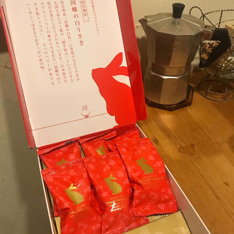 いただいた鳥取のお菓子「因幡の白うさぎ結ショコラ」