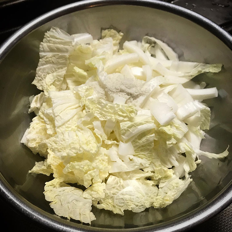 白菜漬けともうひとつ、白菜を使った我が家の冬の定番、ラーパーツァイ仕込む。