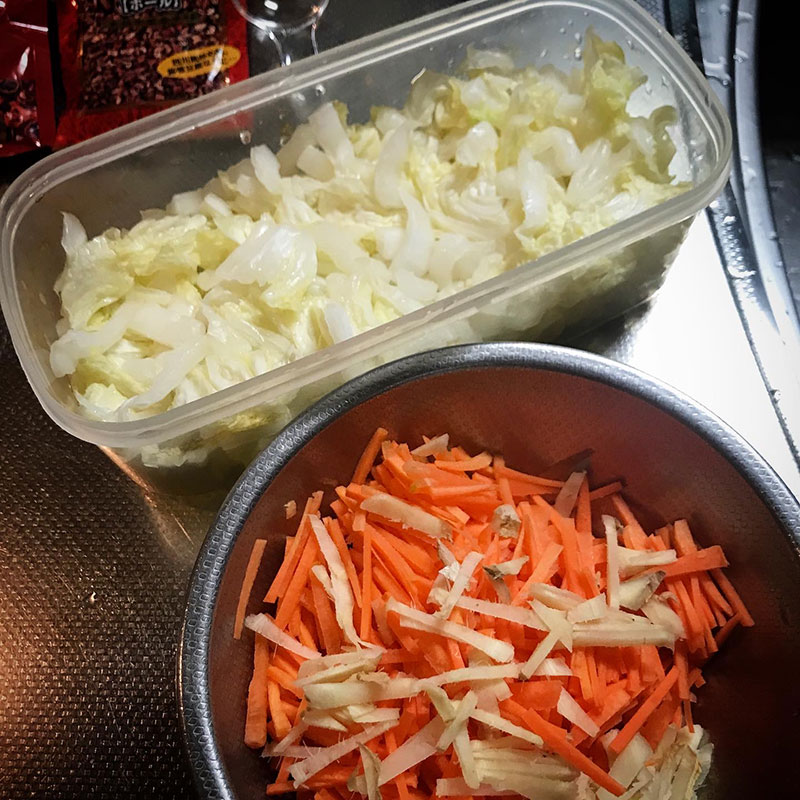 白菜塩漬けにしてる間にニンジンと生姜を千切り