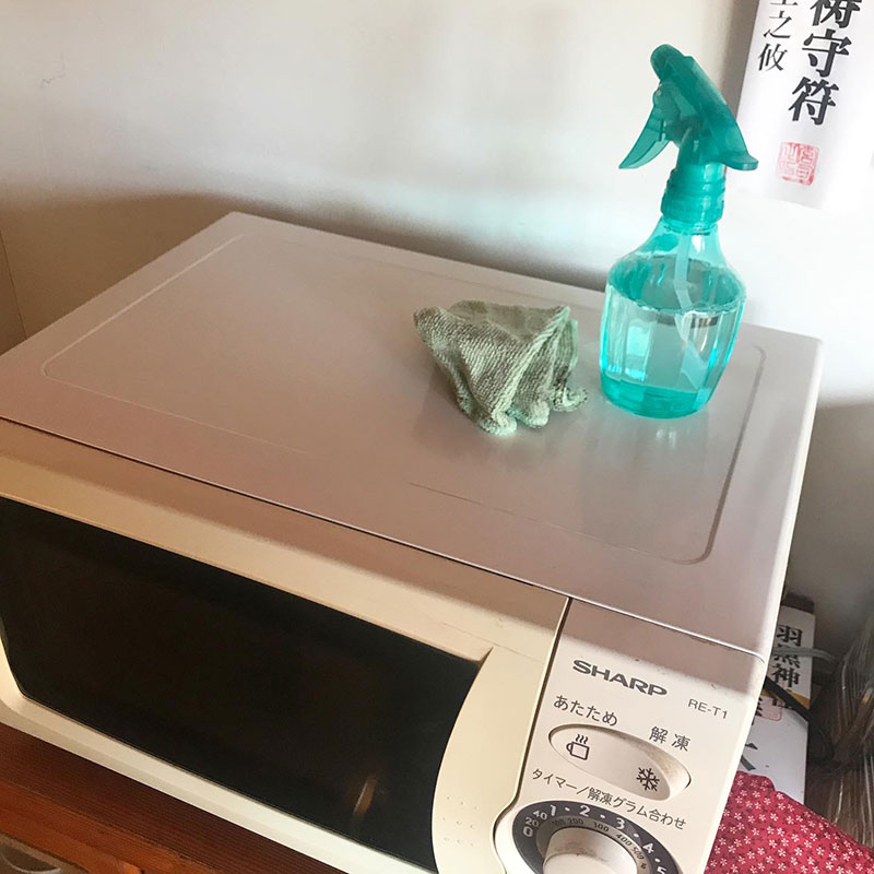電子レンジの上も見ないふりしてたけど拭き取った。