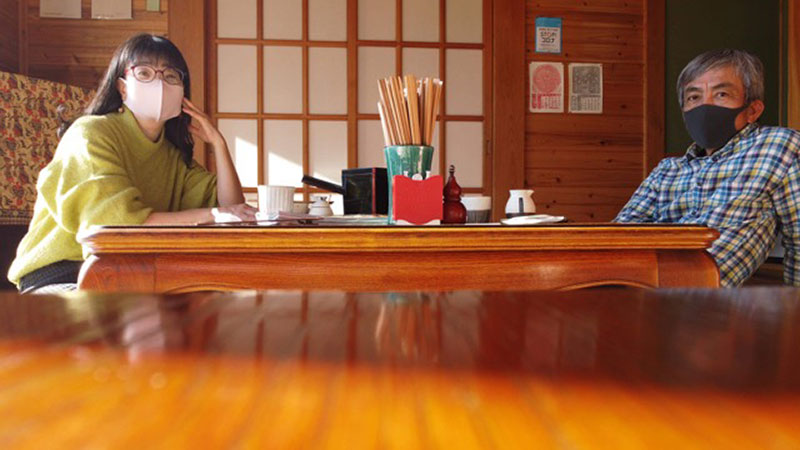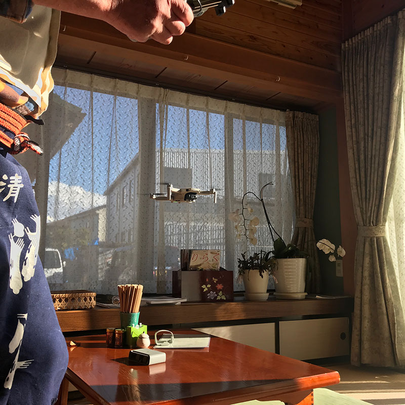 ドローンが撮った僕ら。年越し蕎麦の予約もお願いした。